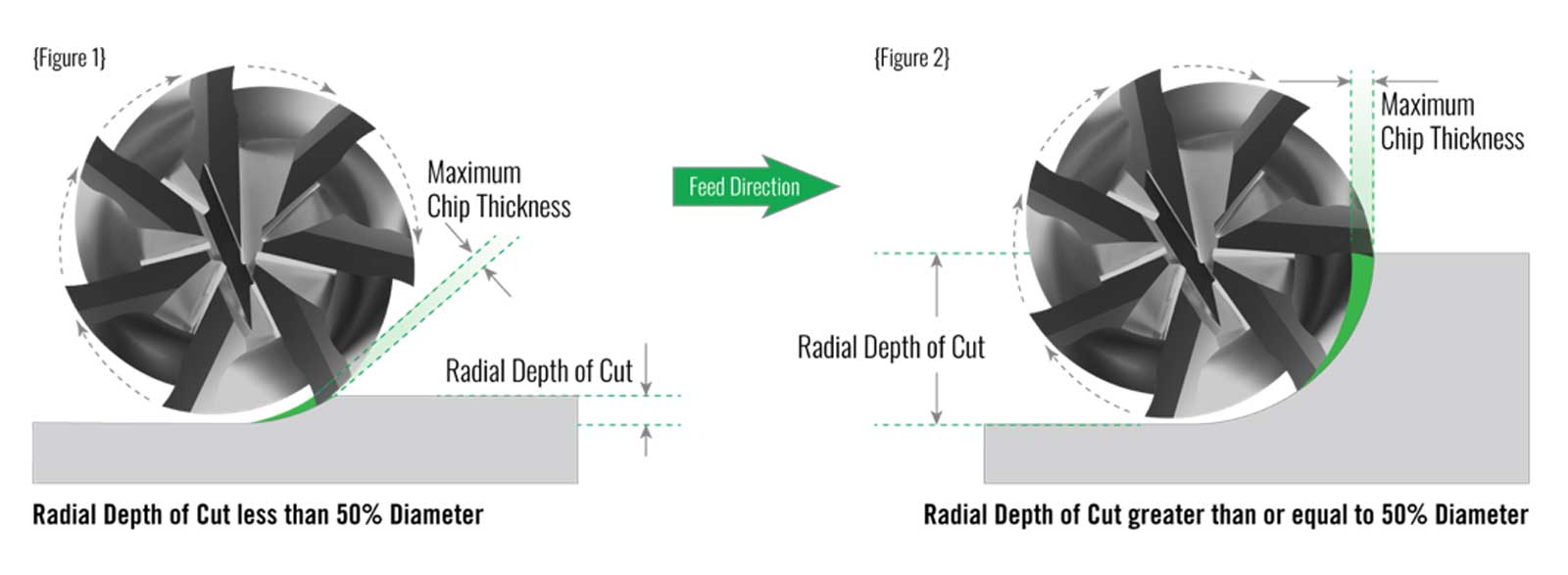 Η κατεργασία υψηλής απόδοσης βασίζεται στη θεωρία της «radial chip thinning» που υπάρχει εδώ και πολύ καιρό. Η βασική ιδέα είναι να διατηρείτε η αποβολή υλικού από το εργαλείο κοπής σταθερή, σε ένα ιδανικό επίπεδο. Για να αυξηθεί ο ρυθμός αφαίρεσης υλικού, μειώνεται σημαντικά το βήμα του εργαλείου από το τυπικό 50% της διαμέτρου, του εργαλείου, αλλά και ο ρυθμός πρόωσης αυξάνεται, προκειμένου να διατηρηθεί το σωστό πάχος του αποβλήτου.